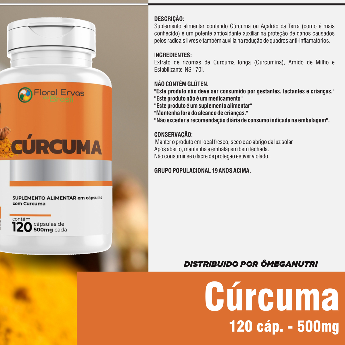 Suplemento Alimentar Cúrcuma – 120cp 500mg – Original Floral Ervas