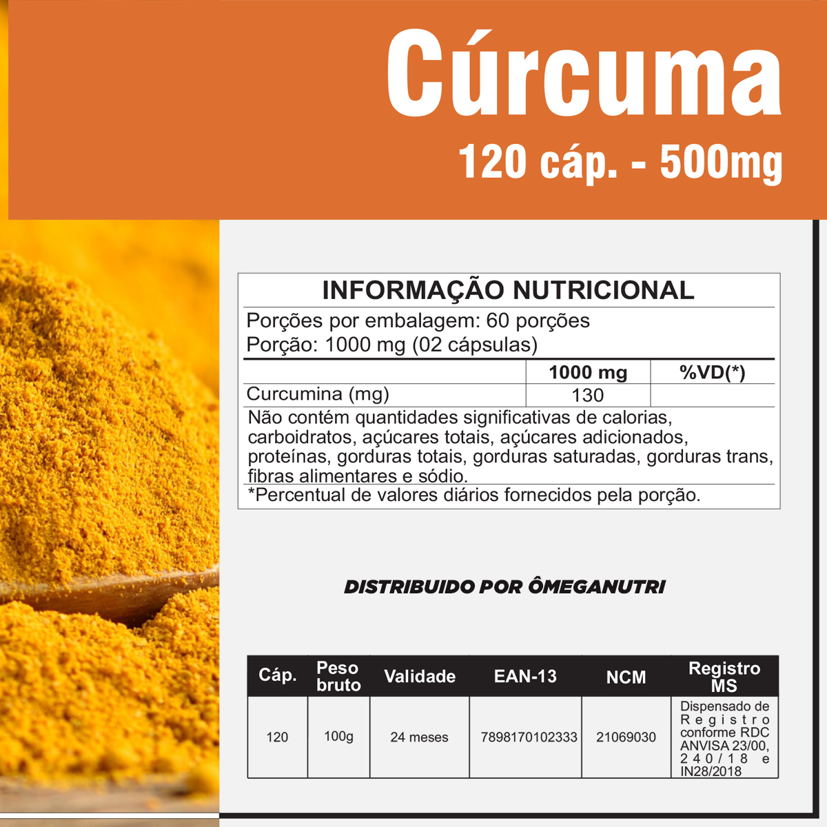– Ingredientes: Extrato de rizomas de Curcuma Longa (Curcumina) , Antiumectante INS 553iii Estabilizante INS 460i.